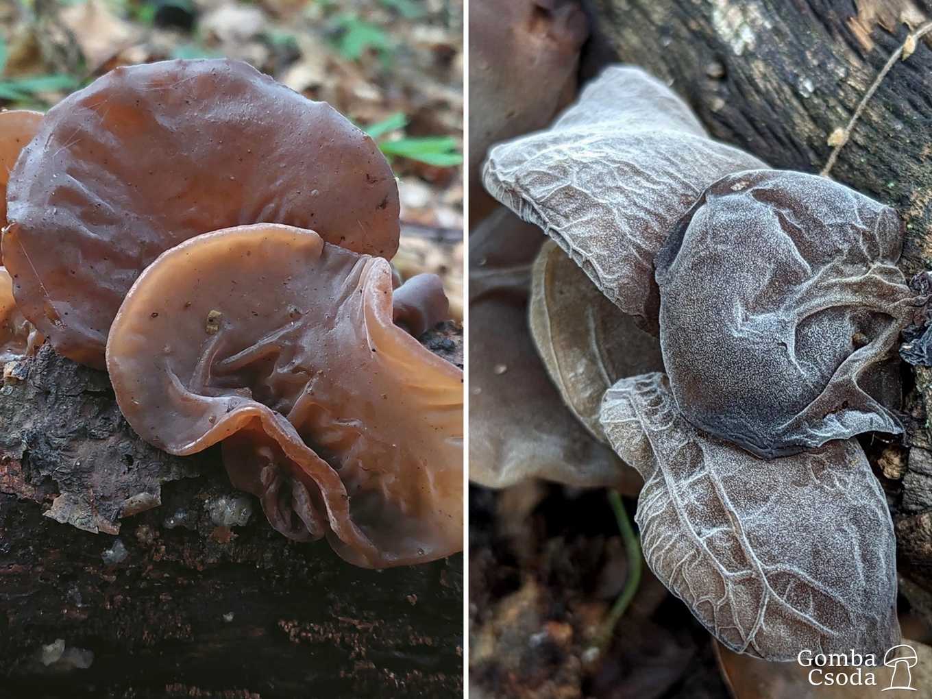 - Fül alakú, vörösbarnás vagy feketés termőtest