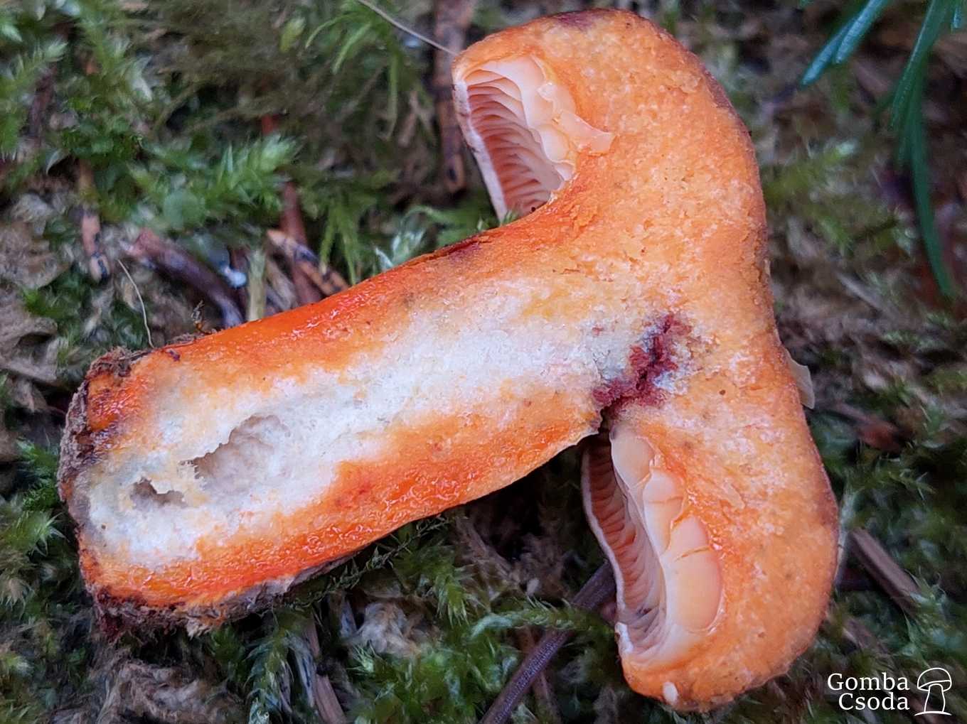 - Narancssárga kalap, lemezek, tönk és tejnedv