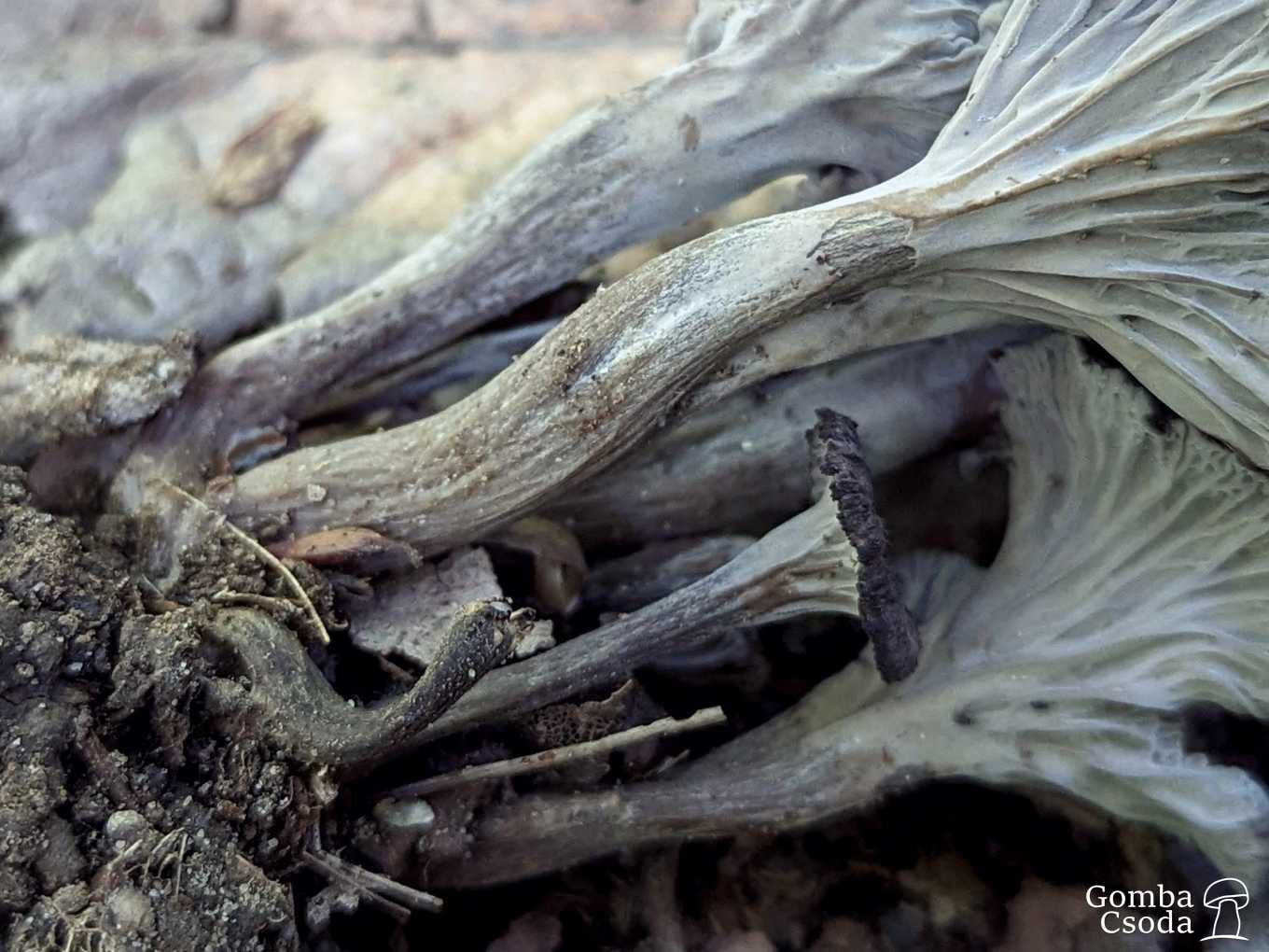 Világosszürke, a tönkre mélyen lefutó, eres-ráncos termőrétegű; erei gyakran villásan elágazók és kereszterekkel is összekötöttek.